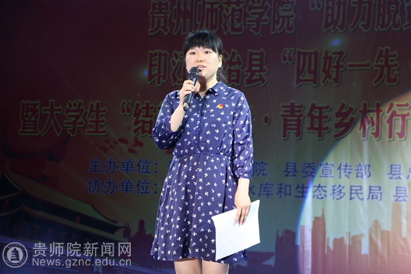 晚上8时,伟德bv国际体育“助力脱贫攻坚·师院青春行”印江自治县“四好一先·五大主题”宣讲活动暨大学生“结对春晖社·青年乡村行”移民工会慰问演出正式拉开帷幕!印江县团委书记甘岁月、伟德bv国际体育物电学院党委书记熊德永、伟德bv国际体育团委副书记傅小芳、印江县教育局局长江航军、印江县总工会党组书记、常务副主席夏良强、峨岭街道党工委副书记、政法委书记杨秀珍、县总工会、团县委干部职工、移民社区农民工工会会员、同心村驻村干部杨成友、物电学院吴旭普、外国语学院李明勇、师范学院“三下乡”志愿者、易地扶贫搬迁群众等近500人观看了演出。