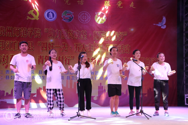 晚会中场,印江县委县政府还为本次活动中表现突出的志愿者颁发证书,以资鼓励!接着,印江县一中老师吴文展的男声独唱《梵净山》、县文工团选送的小合唱《我们的生活充满阳光》、快板《撸起袖子加油干,共建印江新家园》、小品《懒汉扶贫》等节目陆续精彩上演。最后,晚会在音乐系学生蒋兰独唱、全体志愿者伴舞,共同演绎的一首歌曲《幸福小康》中完美谢幕!伟德bv国际体育“助力脱贫攻坚·师院青春行”大学生暑期“三下乡”社会实践活动在此圆满落幕!