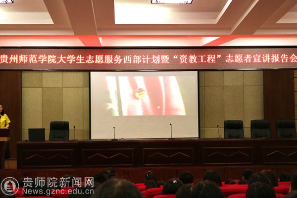 本网讯 繁华似锦志西去,不悔青春凯歌还。5月17日下午,由贵州省西部计划项目办组建的宣讲团在伟德官网召开大学生志愿服务西部计划暨“资教工程”志愿者宣讲报告会。宣讲团成员有传梦公益基金项目创始人孔维、传梦公益基金项目总监高巍、宣讲团成员资教教师李龙茜、贵阳教师计划志愿者周蕊。会议由团委张维域老师主持,校团委副书记傅小芳、贵阳团市委青年志愿者指导中心负责人何浩出席会议,伟德官网11个学院的应届毕业生共260余人参加宣讲会。