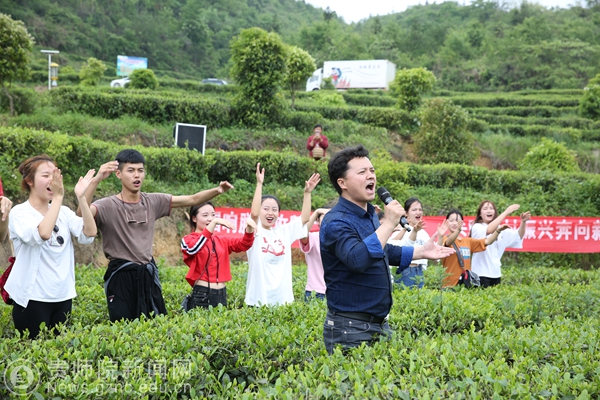 21日,校党委副书记令狐彩桃带领师生一行40余人经过近5小时的颠簸车程到达印江县。演出队伍不顾舟车劳顿第一时间奔赴黔溪村严家组展开了“艺术之星”走进田间地头的首场演出。“艺术之星”们利用歌曲、舞蹈、快板等多样形式向老乡们宣传党的十九大精神、乡村振兴战略、推进春风行动,既接地气又鼓舞人心。让大山里的老百姓在田间地头欣赏“文艺大餐”,在劳动现场为老百姓加油鼓劲。闻讯而来的当地及周围村庄的乡亲们将演出场地围得水泄不通。《为老乡奔小康》、《喊一声老黄》、《牢记嘱托》等反映激励广大群众脱贫攻坚斗志,讴歌全国时代楷模、年份英雄,宣传贯彻党的十九大精神和习近平在贵州代表团重要讲话精神的歌曲,唱响在印江峨岭街道的田间地头。《撸起袖子加油干,共建印江新家园》快板说唱:“好政策,人心暖,齐心协力把梦圆。干群同心攻坚战,党的恩情记心间。撸起袖子加油干,共建美好新家园。”引起了现场群众的阵阵叫好。