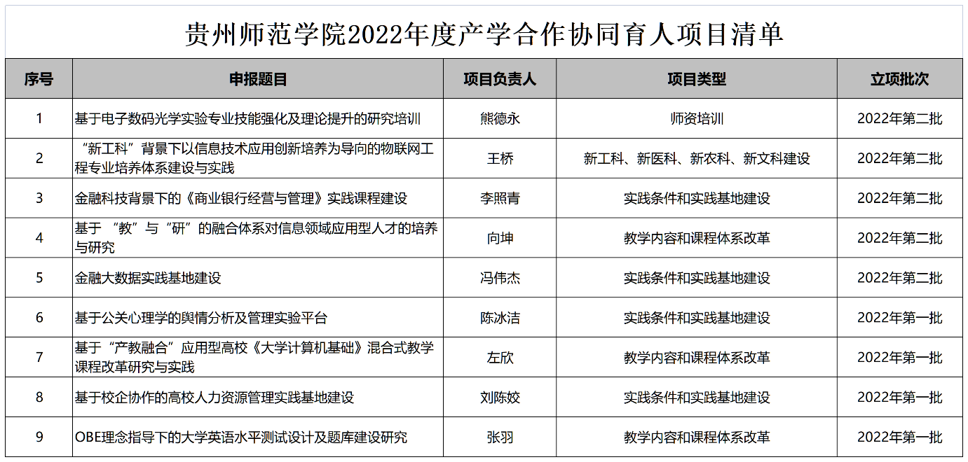 本网讯 近日,教育部高等教育司发布了《关于公布2022年第二批教育部产学合作协同育人项目立项名单的通知》(教高司函〔2023〕1号),伟德官网“基于电子数码光学实验专业技能强化及理论提升的研究培训”等5个项目成功获批。至此,伟德官网2022年度共有9个项目获教育部产学合作协同育人项目立项。