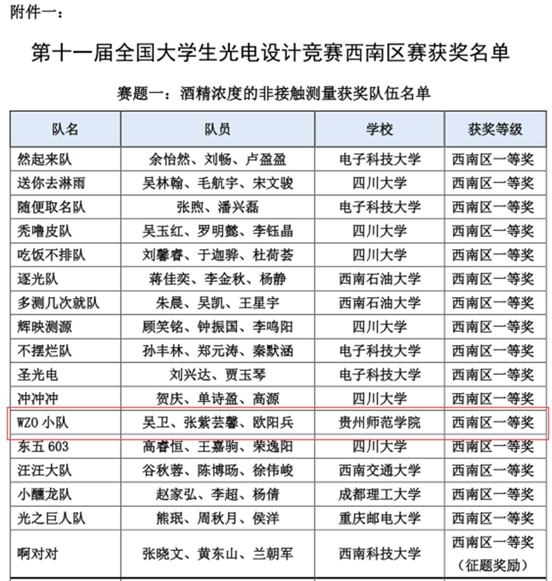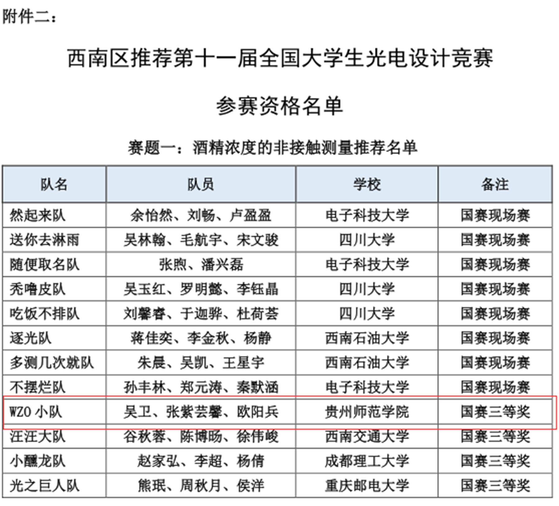 本网讯 第十一届全国大学生光电设计竞赛西南区赛于2023年8月12日至14日在电子科技大学成功举办,来自四川、重庆、贵州、云南、西藏的36所院校262支队伍近1310名师生报名参赛。本次竞赛分为两个赛题(赛题一:酒精浓度的非接触测量;赛题二:“迷宫寻宝”光电智能小车)。伟德官网报名参赛酒精浓度非接触测量组与光电智能小车组共6支队伍,同学们在比赛中奋勇争先,赛出了风采。经过现场赛三轮的激烈比拼,由指导老师陈德良、杨月菊带领的由吴卫、张紫芸馨、欧阳兵组成的WZO小队(酒精浓度)荣获西南区赛一等奖拟推国赛资格,由指导老师莫章洁、陈德良带领的由张文龙、王春和冯燃燃组成的旺旺队(小车组)荣获西南区赛三等奖;陈德良、杨月菊获得优秀指导教师奖;伟德bv国际体育获得优秀组织奖。