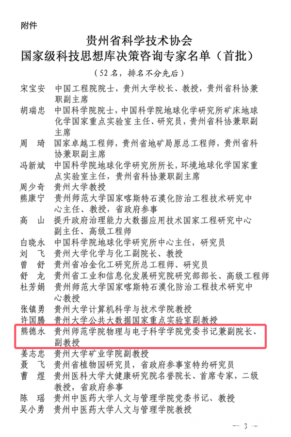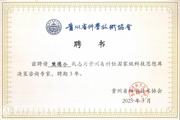 本网讯 3月20日,贵州省科协国家级科技思想库决策咨询专家聘任仪式暨工作座谈会在贵阳举行。伟德官网熊德永老师成功入选贵州省科协首批国家级科技思想库决策咨询专家。
