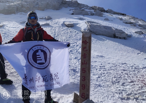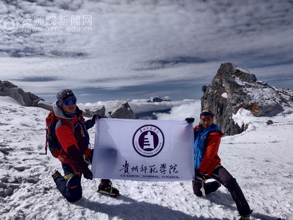 经学院和校地合作单位贵州启点鹰极教育集团统筹,王恒、龙腾两名志愿者5月1日从学校出发,途经1193km耗时18个小时,于次日到达云南哈巴雪山大本营,他们由向导带领进行了适应性专业训练。5月3日他们向哈巴雪山进发,面临着随时都可能缺氧、失温、冻伤、雪盲、山崩等造成的不确定性危险,途中一名队员突发高原反应,出现头晕、恶心等症状,带队教练当机立断,调整登顶计划,前往五号营地进行调休。对高海拔入睡困难、无法深度睡眠等情况下予以综合评估和研判,毅然决定在5月4日凌晨对哈巴雪山主峰发起冲顶。