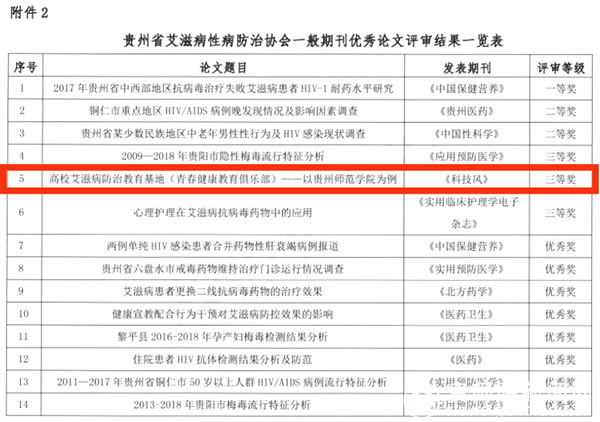 贵州省艾滋病性病防治协会一般期刊优秀论文评审结果一览表