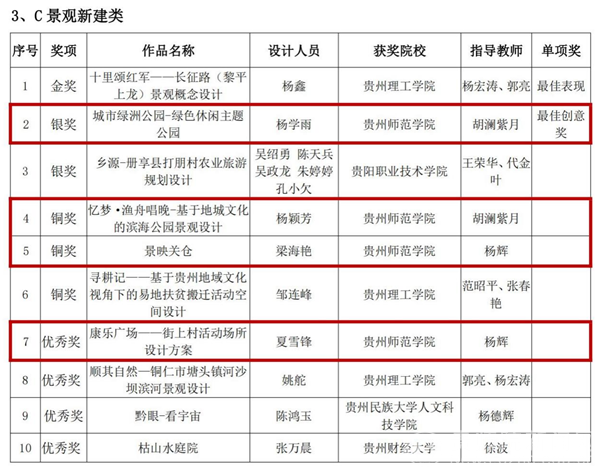 本网讯 近日,由贵州省装饰行业协会、贵州省美术家协会设计艺术委员会主办的“2021年贵州金树奖——第二届环境设计专业设计大赛”落下帷幕。此次大赛分为室内居住、室内商业、景观新建、景观改造、命题设计共五个比赛组别。全省高校学生组共164件作品参评,通过组委会的收录、审核、分类和专家评审委员会评审,最终选出获奖作品。伟德官网学生在本次大赛中喜获佳绩,斩获银奖(最佳创意)1项、铜奖3项、优秀奖2项的好成绩。伟德官网荣获大赛最佳组织奖。