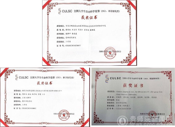 项目“Clubiona jiugong sp.nov.,the fifth species of C.zilla-group from China(Araneae:Clubionidae)”由学院喻浩老师指导,宋婉涓、曾足仙、毛佳丽、易黎娜、陈勇春、黎浪浪五位同学完成,获得2021年全国大学生生命科学竞赛科学探究类全国三等奖。
