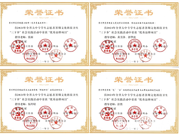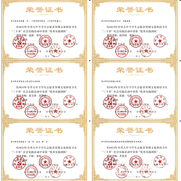 本网讯 为深入学习贯彻习近平新时代中国特色社会主义思想,引导和帮助广大青年学生上好与现实相结合的“大思政课”,省委宣传部、省精神文明办、省教育厅、团省委、省学联对在2021年贵州省大中专学生志愿者暑期文化科技卫生“三下乡”社会实践活动中表现突出的集体和个人开展评优。经学校推荐、省级初评和专家评审等环节,伟德官网共获评4个优秀单位,6个优秀实践团队,8个优秀实践个人和4个优秀团队项目。