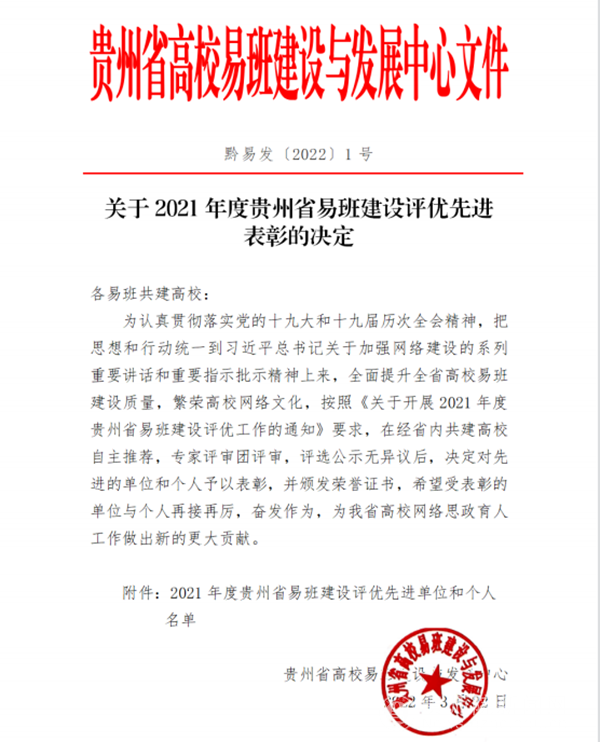 关于2021年度贵州省易班建设评优先进表彰的决定