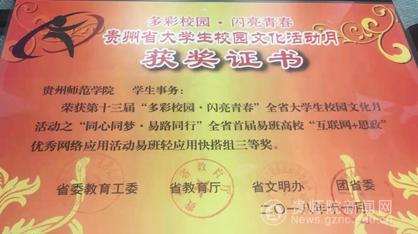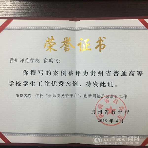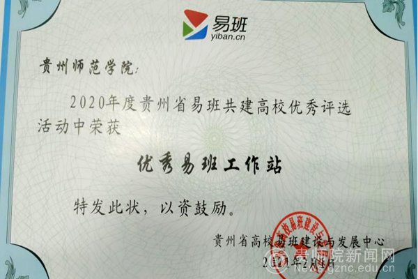 贵师院易班发展中心从2018年—2021年3年时间荣获了省易班发展中心评选的“优秀易班共建高校”、“优秀易班工作站”各1个、优秀易班工作站站长2名、连续3年荣获“优秀易班指导教师”荣誉;2019年易班发展中心撰写的工作案例获省教育厅的评选的“高等学校学生工作优秀案例”。