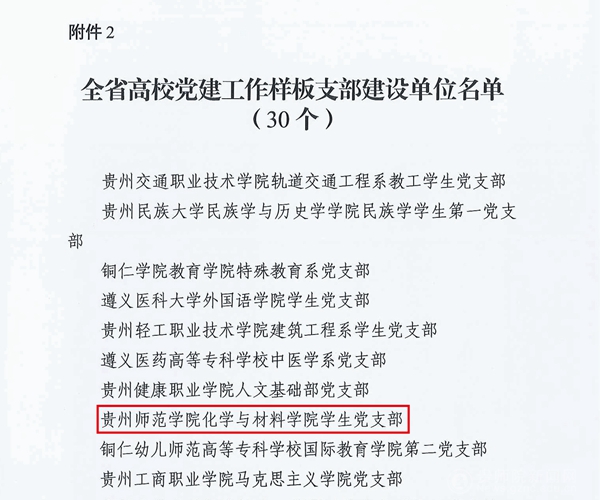 近日,省委教育工委公布了“全省高校党建示范点”和“全省高校党建‘双带头人’”培育工程建设单位名单,伟德官网3个基层党组织入选全省“五级书记抓党建”工作“五个一批”工程项目建设单位,其中,伟德官网音乐舞蹈学院党委入选全省高校党建工作标杆院系建设单位,化学与材料学院学生党支部入选全省高校党建工作样板支部建设单位,商学院教师党支部入选全省高校“双带头人”教师党支部书记工作室建设单位,推动伟德官网党建特色品牌在数量、质量、影响力等方面取得进一步突破。