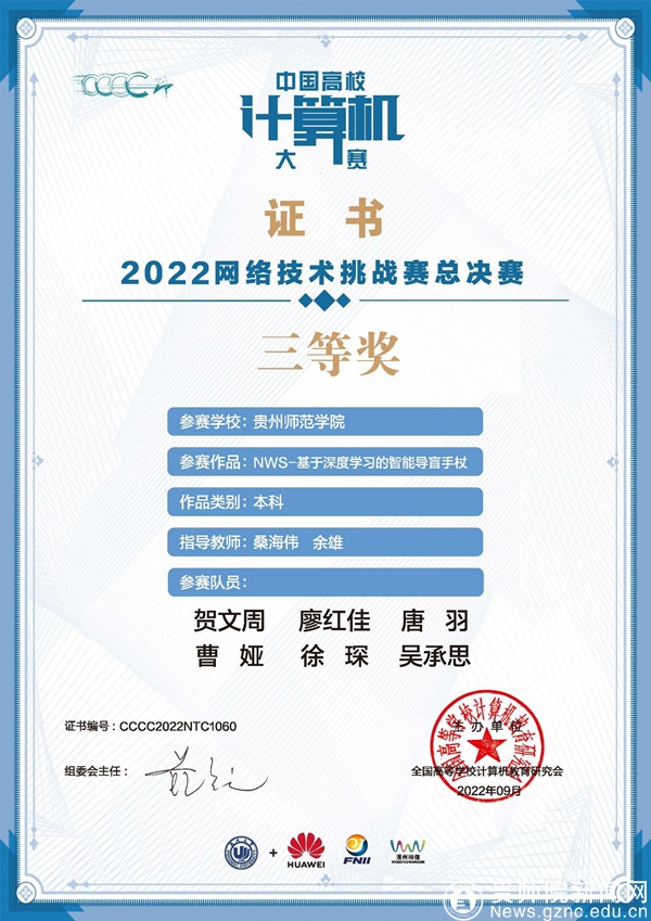 伟德官网“杖碍无阻”代表队在第七届中国高校计算机大赛-网络技术挑战赛中荣获全国三等奖