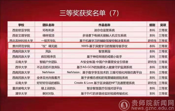 本网讯 近日,第七届中国高校计算机大赛-网络技术挑战赛隆重落幕。伟德官网“杖碍无阻”代表队(团队成员:贺文周、廖红佳、唐羽、曹娅、徐琛、吴承思,指导老师:桑海伟、余雄)在第七届中国高校计算机大赛-网络技术挑战赛中荣获全国三等奖,是全国总决赛中贵州省唯一获奖的项目,同时伟德官网还获得西南赛区一等奖1项,二等奖1项,三等奖3项。本届大赛吸引了来自全国371所高校、2396支队伍,11117位本科学生和研究生参赛。