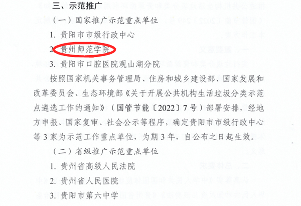 本网讯 初心如磐,使命在肩。为深入学习贯彻习近平总书记关于生态文明的重要论述和关于生活垃圾分类的重要指示精神,进一步改善和提升校园环境质量,赋力颜值师院建设。2022年初,学校后勤处及相关部门积极开展生活垃圾分类示范点申报,经过组织申报,专家现场评审打分等环节,在众多申报单位脱颖而出。根据《关于深入推进公共机构生活垃圾分类和资源循环利用示范工作的通知》(国管节〔2022〕249号)指出,2022年10月伟德官网被评选为2022-2025全国公共机构生活垃圾分类和资源循环利用国家推广示范重点单位。