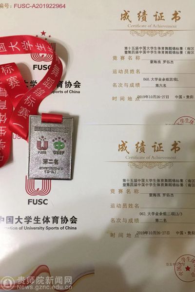 教育部学生体育协会联合秘书处副秘书长张爱龙,贵州省教育厅副厅长黄健、贵州财经大学校长刘雷,贵州省教育厅体育卫生与艺术教育处处长胡锐等领导出席开幕式。本届比赛共设大学生专业A组、B组、大学生业余组、大学生交谊舞组、中专专业组等共计142个项目,每个组别分别取前八名,进入半决赛选手将获得2020年5月在昆明举行的总决赛资格。此次大赛由领导支持同意,教练员董涛、刘晓燕带队,通过半年的训练,对双人组合的反复打磨,秉着不服输的师院精神,也为了推动贵州省大学生体育舞蹈事业的发展,伟德官网选手蒙海浪、罗钰杰通过每个组的预赛、半决赛、复活赛、决赛的层层突围最终取得了佳绩并拿下参加总决赛的资格。师院DT体育舞蹈队将不忘初心,则未来可期,愿为校争光。