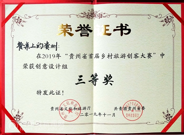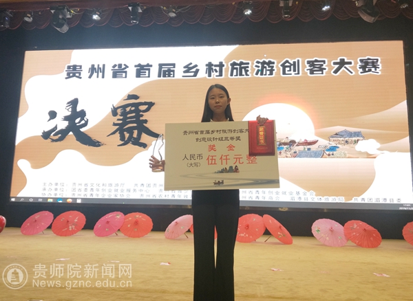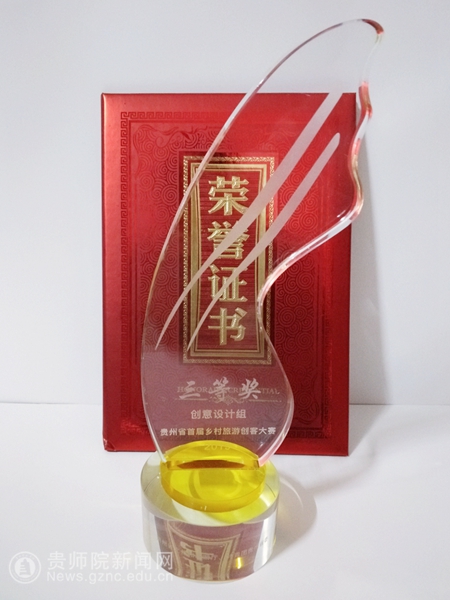 本网讯 近日,由省文化和旅游厅、共青团贵州省委主办的“贵州省首届乡村旅游创客大赛”总决赛在湄潭县举行。省文化和旅游厅厅长张玉广、团省委书记涂妍出席大赛并为获奖选手颁奖。伟德官网美术与设计学院汪力老师指导的17级产品专业学生龙继雪在此次比赛中荣获三等奖。