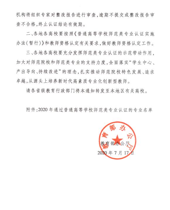 本网讯 近日,教育部办公厅发布《关于公布2020年通过普通高等学校师范类专业认证的专业名单的通知》,经伟德官网申请、教育评估机构组织专家现场考查、普通高等学校师范类专业认证专家委员会审定,伟德官网数学与应用数学专业顺利通过教育部普通高等学校师范类专业认证第二级认证,成为全国普通高等学校26个通过师范类专业二级认证的数学与应用数学专业之一,是贵州省首个通过师范类专业认证的数学专业,也是贵州省首批通过师范类专业认证的5个专业之一。
