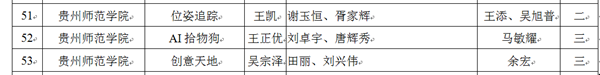 竞赛获奖队伍名单公示结果部分截图