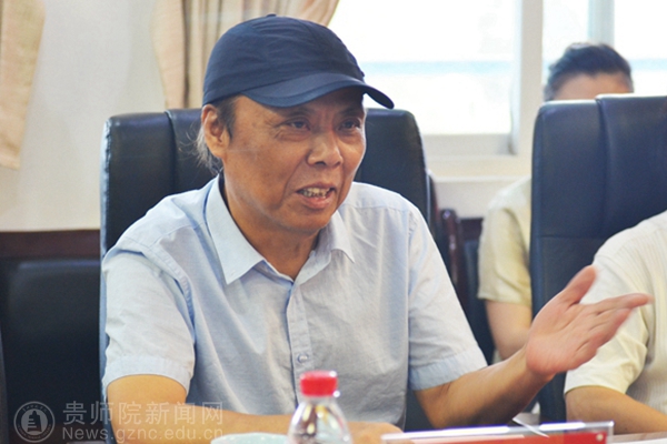 随后,美术与设计学院院长聂森向各位专家介绍了美术与设计学院的办学与科研情况,并请求几位专家的对学院学科建设与科研工作、教师成长进行悉心指导。聂森院长还从是学院美术创作队伍的成长与壮大,专业特色的打造;科研如何更好地为贵州服务,将论文写到贵州大地上;用学院学术之力助力乡村振兴;如何做好贵州少数民族传统设计智慧作的研究与创作等问题与专家们进行了交流。