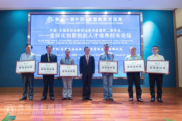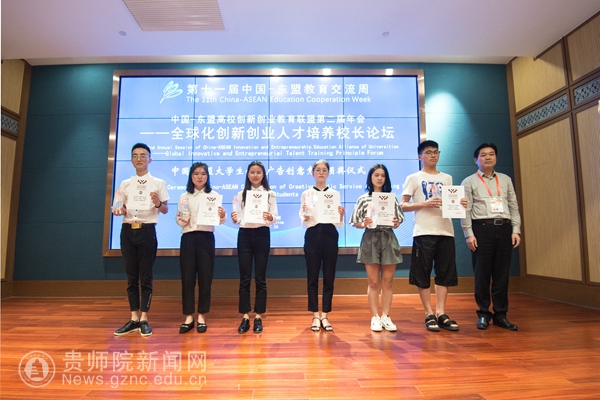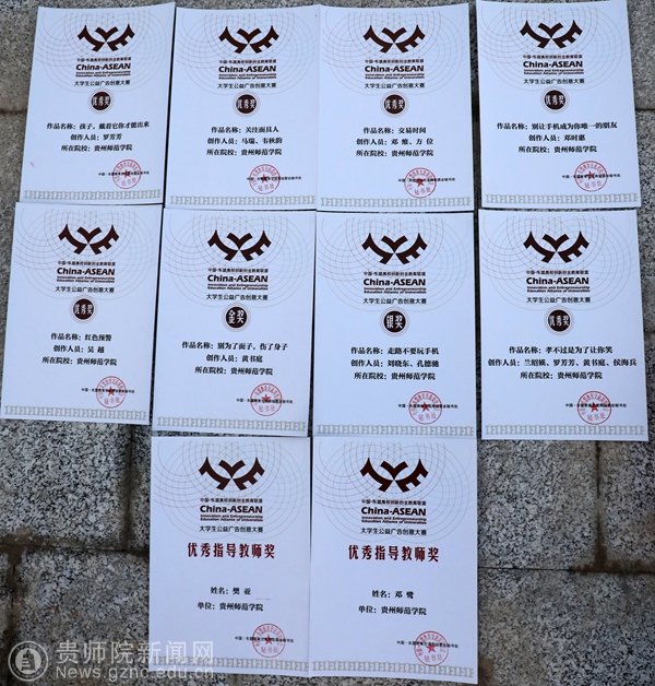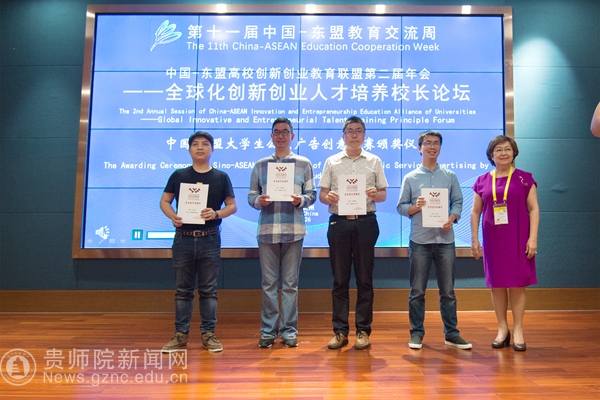 本网讯7月26日,以“教育合作新起点 ,人文交流新未来”为主题的第十一届中国—东盟教育交流周在贵安新区开幕。伟德官网美术与设计学院院长聂森、美术教研室副主任廖江华以及获奖学生参加了中国-东盟大学生公益广告创意竞赛颁奖仪式。