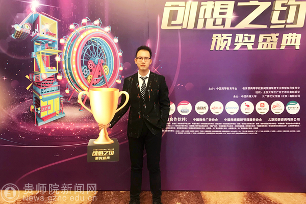 第十届大广赛主题口号为“创意我闪耀”,共有1449所高校参赛,经校级初选后,共收到作品251656组(约50万件)。经过三个月的省级评选、全国评审、网上公示,最终产生全国一等奖108组、二等奖329组、三等奖824组、优秀奖2835组。据初步统计:伟德官网文传学院在本次大赛中获得全国二等奖1项、三等奖2项、优秀奖9项。获贵州省赛区一等奖9项、二等奖14项、三等奖22项、优秀奖32项。其中新媒体类获奖比例为93%、广播类获奖比例为92%、视频类获奖比例为75%、微电影类获奖比例为67%。伟德官网文传学院16级赵伟韬同学主创的视频类影视广告作品《现在就出发》(指导老师:娄立原)更斩获全国级二等奖,赵伟韬同学作为获奖代表上台领取了获奖证书和奖品。