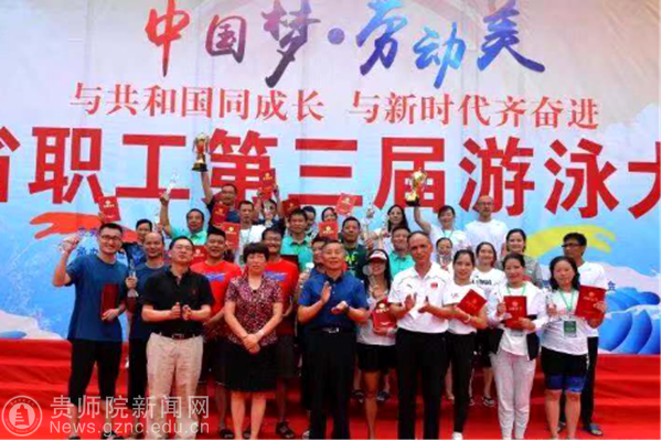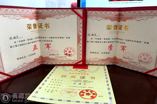 此次大赛由贵州省总工会、贵州省体育局联合主办。全省共有来自各市(州)、贵安新区、省各产业(行业)的29支代表队近300名职工运动员参加比赛。经过预赛、决赛的角逐,生物科学学院程搏幸老师荣获男子乙组100米自由泳亚军、50米蛙泳季军及4×50米男女自由泳接力第四名。