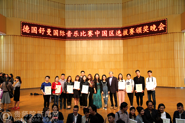 本网讯 近日,2017年“德国舒曼国际音乐比赛”中国区选拔赛在遵义师范学院举行。来自中国音乐学院、上海音乐学院、西安音乐学院、南京师范大学、苏州大学、西南大学、贵州师范大学、贵州民族大学等全国各大高校的三百余名师生参加了此次比赛。伟德官网艺术学院名师工作室教师刘临洪带领郭思、杨清香、龙婷婷、张枫等同学斩获二枚银奖、九枚铜奖。