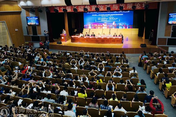 “第七届基础教育改革与发展论坛”年会吸引了来自全国各地的中小学校长,教师,教研员,高等师范院校的师生,教育科研院所研究人员等近900余人参会。会议流程由开幕式、获奖论文颁奖、大会主报告、分论坛和闭幕式组成。论坛以“学生发展核心素养落地与基础教育课程教学变革”为主题,并以“课程设计如何落实学生发展核心素养培养、学科课程教材与学科核心素养融合研究、课堂教学如何培养学生发展核心素养、学生发展核心素养培养与校本课程深度开发、学生发展核心素养与教师教育教学方式变革、数字资源开发与中小学数字化教学”等六大议题展开。大会主报告由邱学华(尝试教学理论研究会理事长、特级教师)、林伟庆(厦门市教育科学研究院院长)、余文森(福建师范大学教育学院院长、教授)、窦桂梅(清华大学附属小学校长、特级教师)、程红兵(深圳明德实验学校校长、特级教师)分别作“中国基础教育的理论缺失与对策”、“’多元适宜教育’的理论与实践探索”、“基于核心素养的学习观(教学观)重建”、“成志教育,照耀一生”、“基于核心素养的语文课程改革”的报告;分论坛分别以“小学生、中学生发展核心素养落地与学科课程教学变革”、“学生发展核心素养落地与课程教学论创新”、“数字资源开发与中小学数字化教学”的主题进行。
