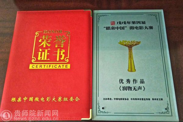 本网讯 4月16日—4月18日,由中国电影家协会、中共河南省委宣传部、中共郑州市委宣传部、郑州市文联主办;郑州市电影电视家协会承办、世界华语微影影视联盟、美国文化艺术联合会、香港微电影学会共同承办的第四届“根亲中国”微电影大赛在河南郑州举行。由伟德官网艺术学院2017级美术学专业学生桂航担任艺术指导拍摄制作的电影《润物无声》斩获此次比赛优秀作品奖。