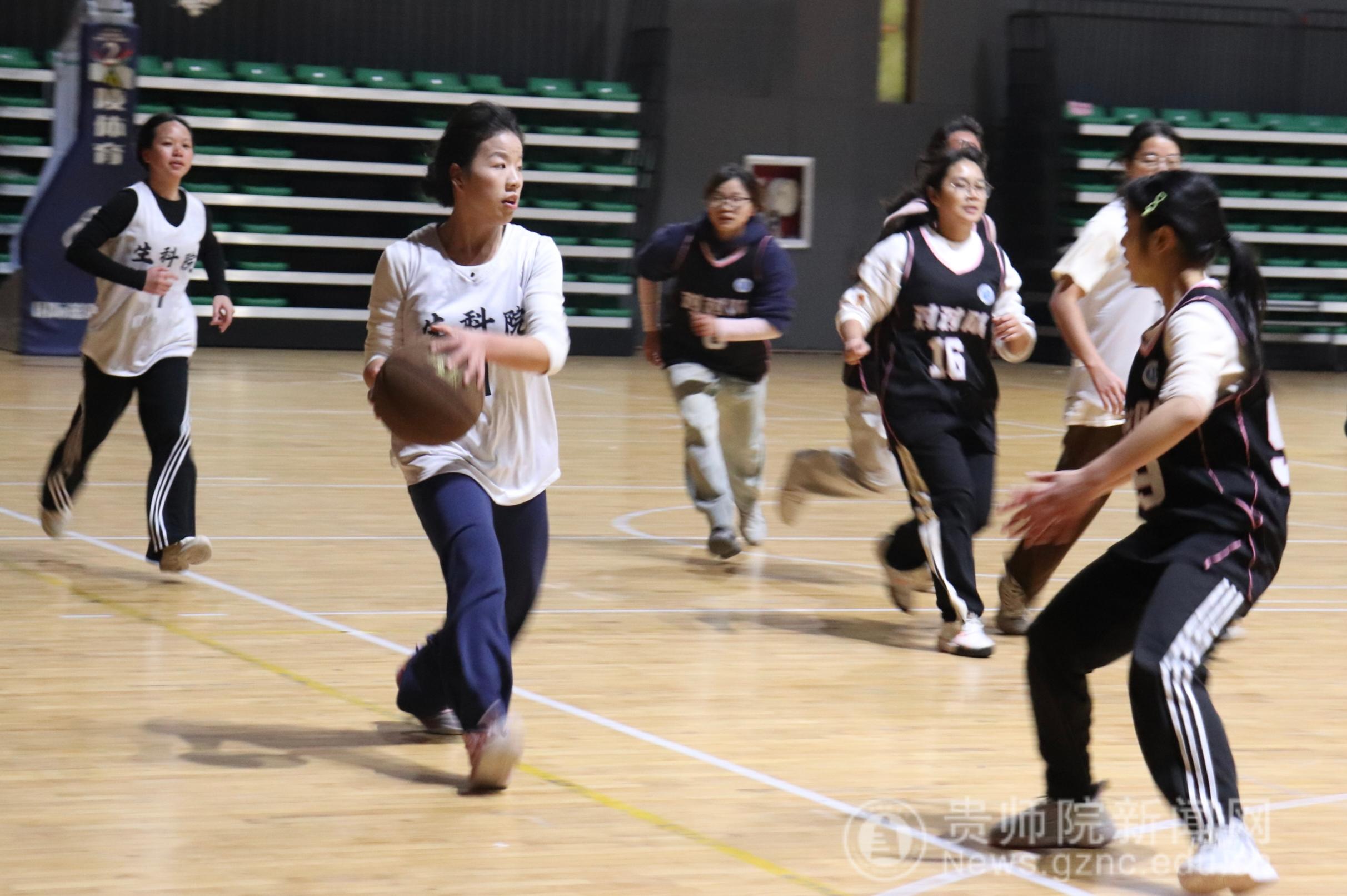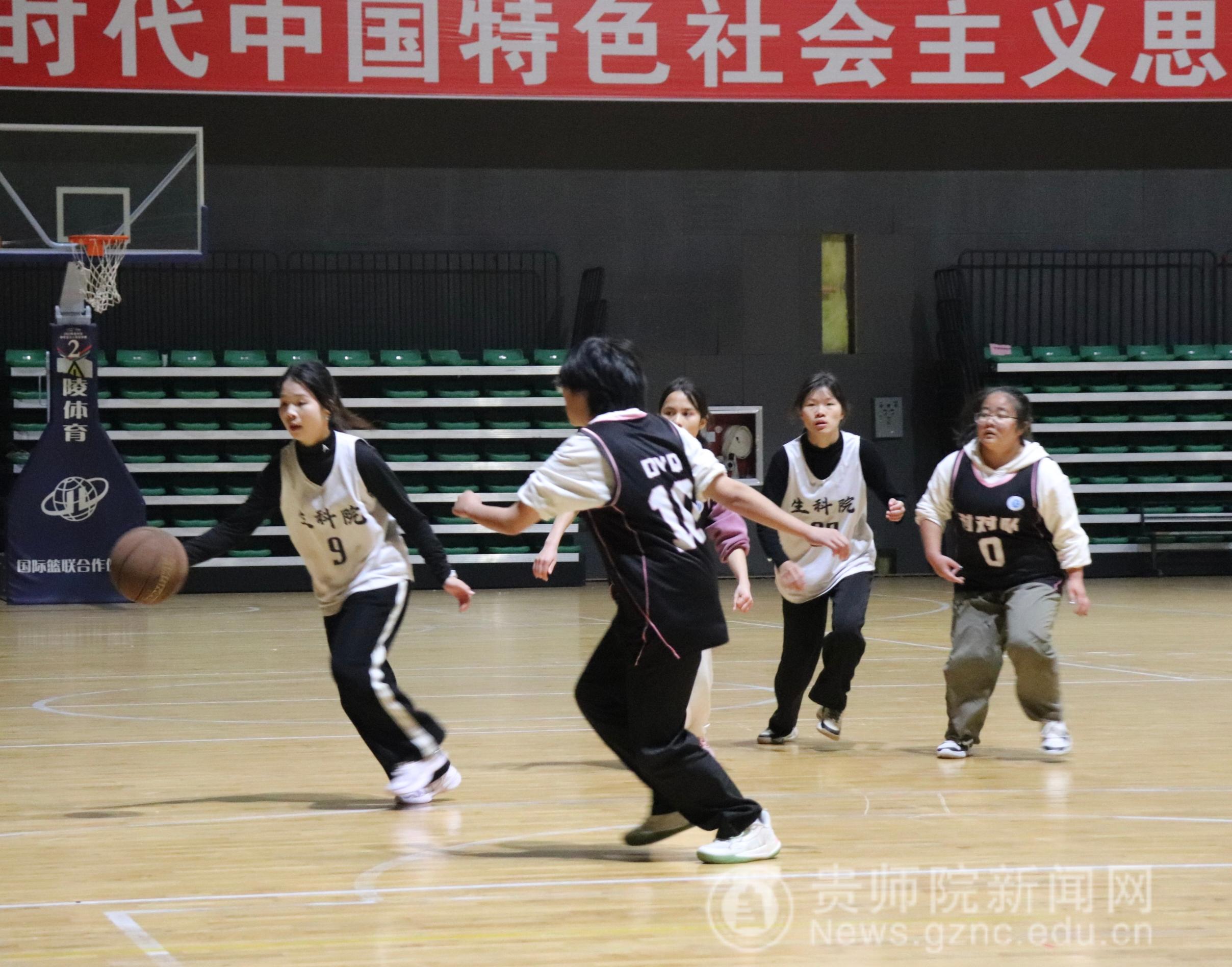本网讯 12月3日,伟德bv国际体育体育馆内活力涌动,一场女篮友谊赛在此拉开帷幕。身穿白色马甲的生物科学学院球员与身穿黑色马甲的教育科学学院球员同场竞技,以球会友的氛围点亮了赛场。
